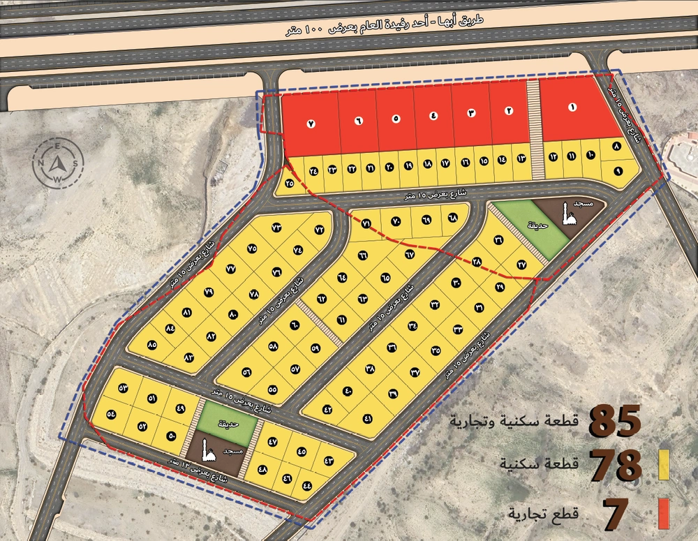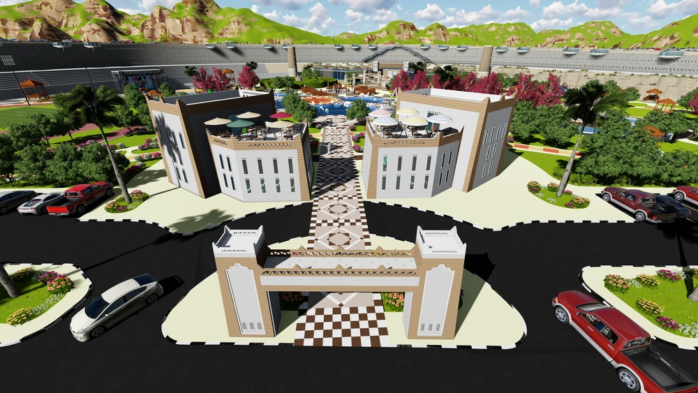 A huge commercial complex on an area of 66,210 m2 of three floors (basement, ground and first) designed in the local style to be an architectural icon in the heart of Khamis Mushait city. It includes a number of open squares designated for celebrations and popular gatherings, in addition to a large mosque and a 5-star hotel, making it a distinctive commercial and entertainment destination for tourists and residents of the region.