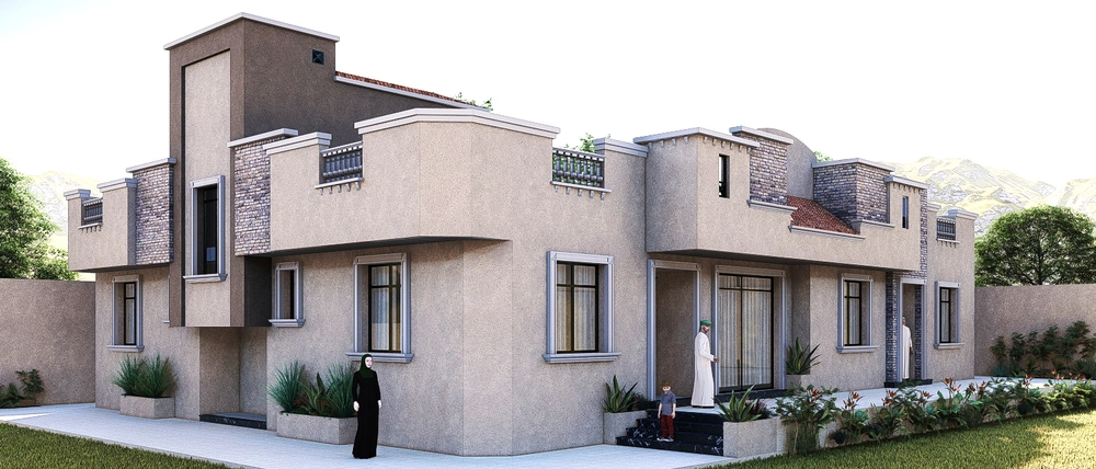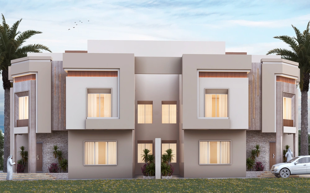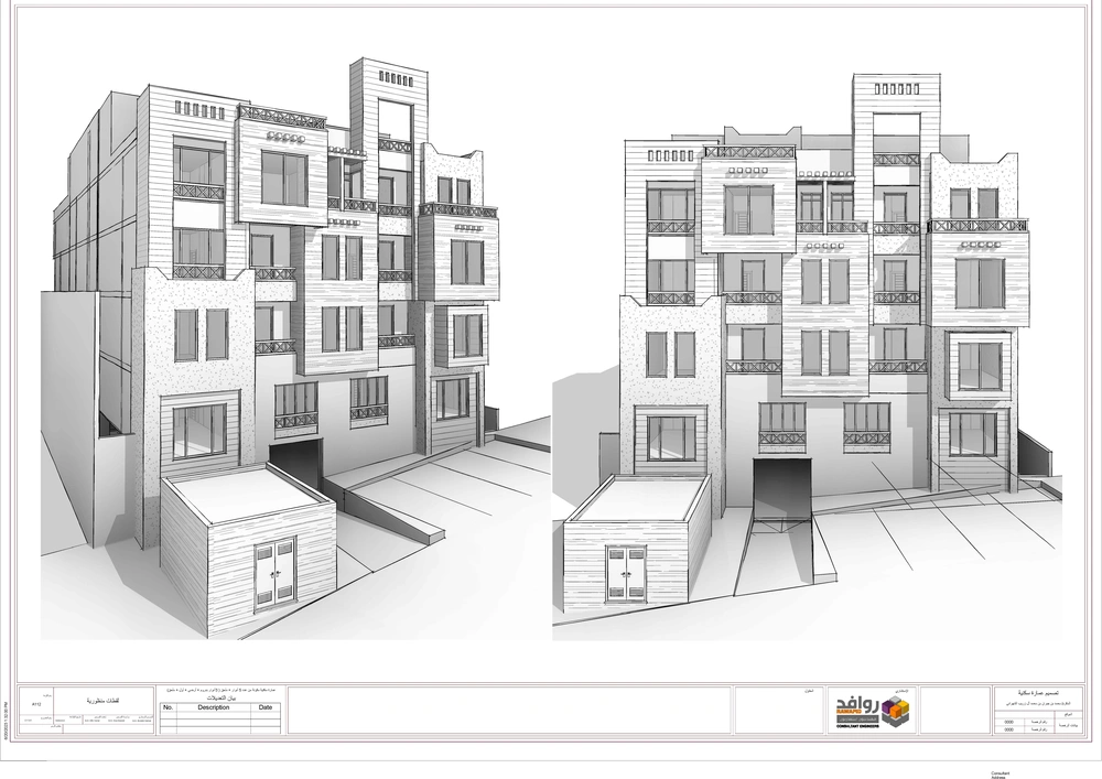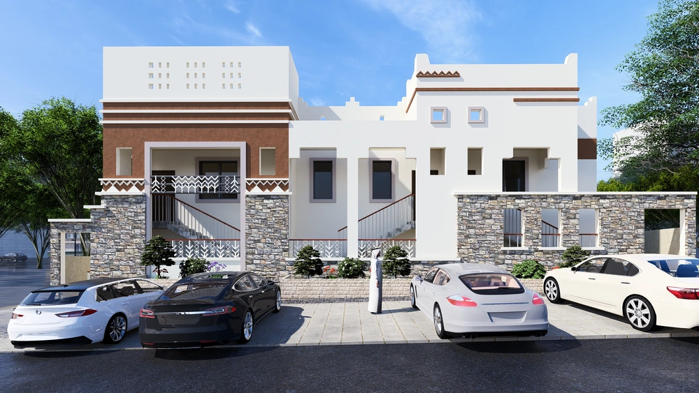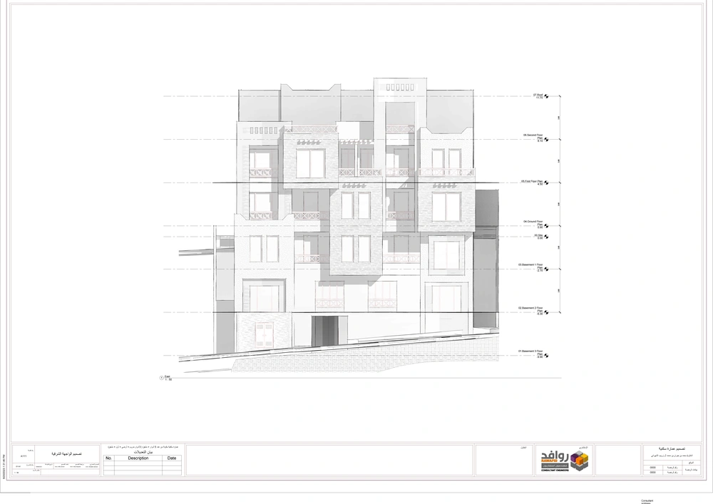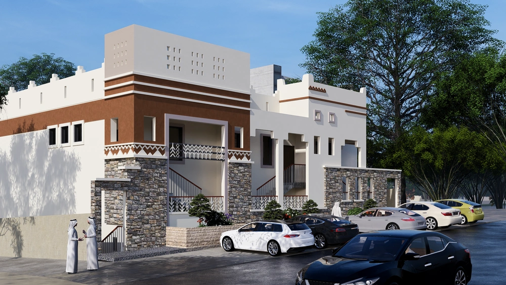 A residential building project on a land area of 539 m2 located on two parallel streets, consisting of four basement floors, a ground floor, a first floor and an upper annex, and the design of the facades is inspired by the Asiri style and identity.
