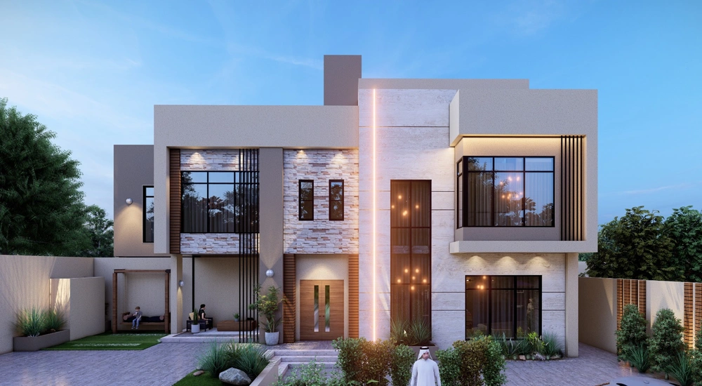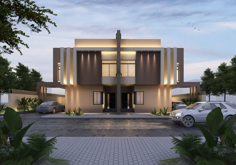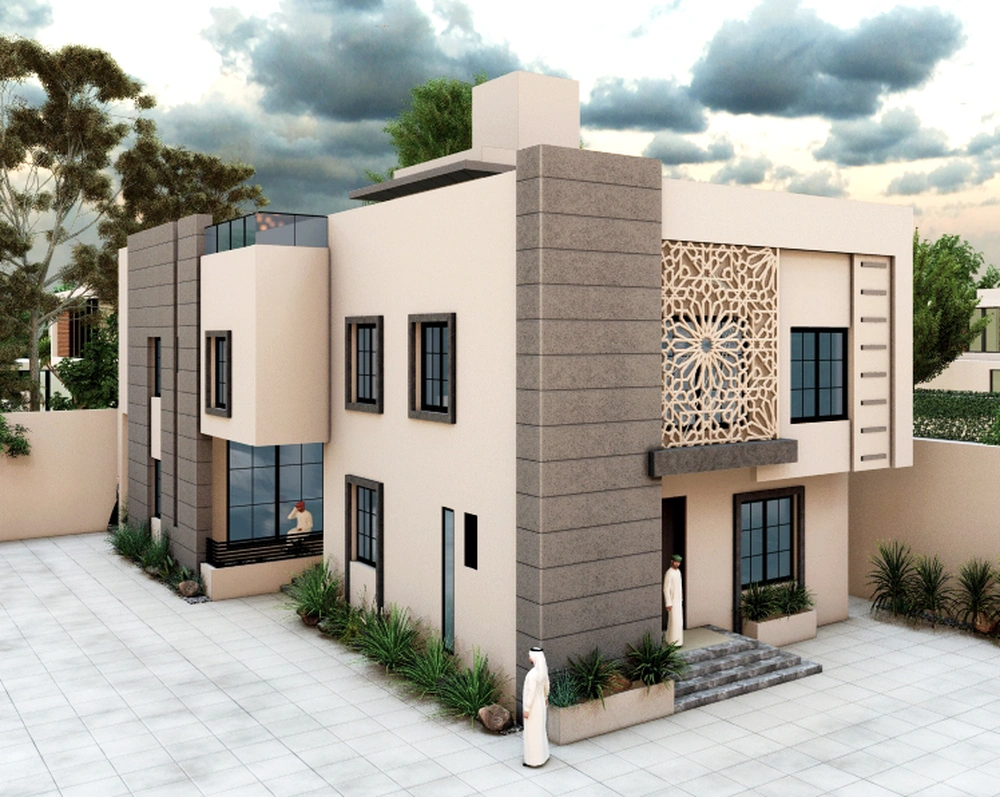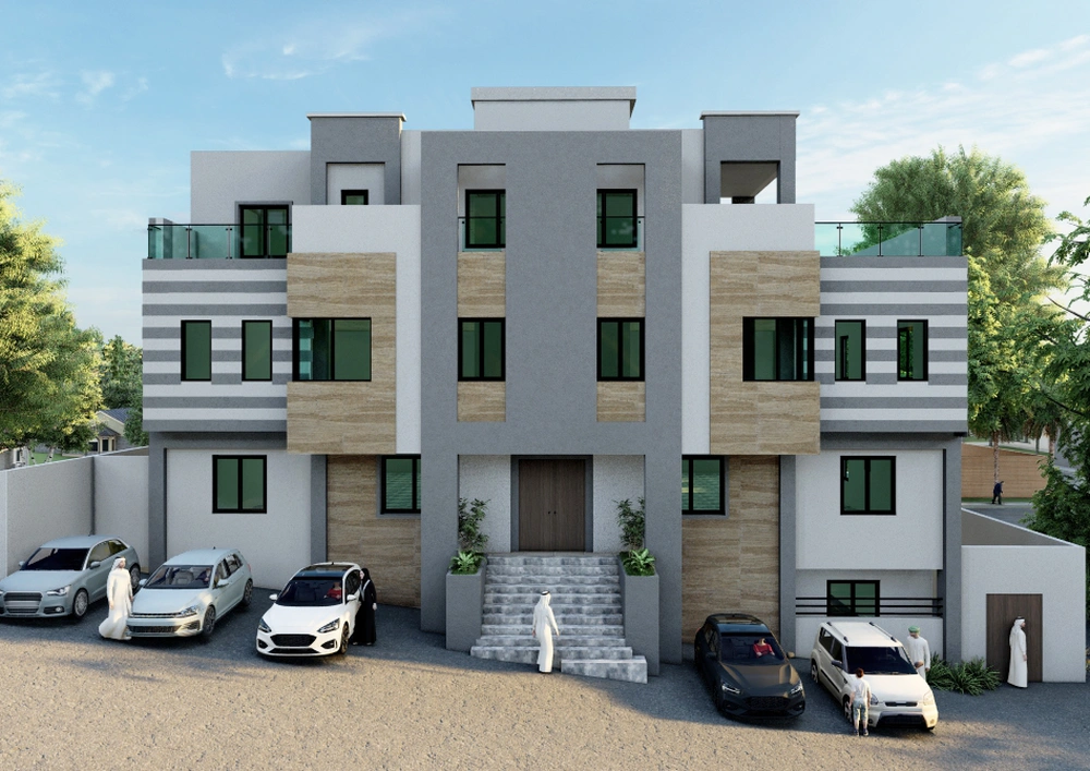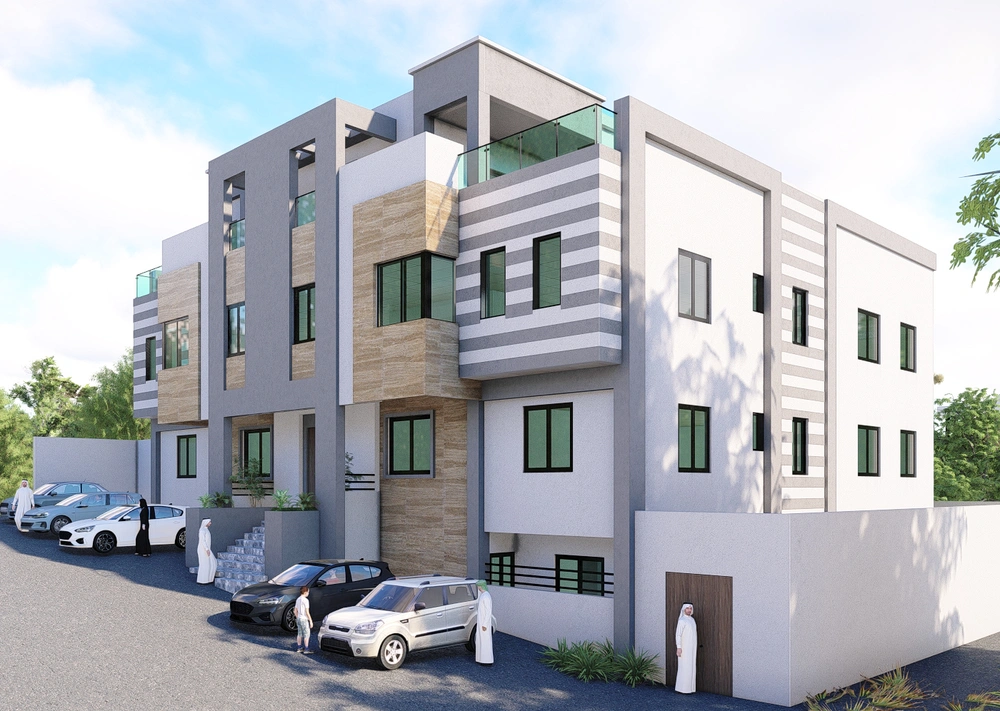 A residential building project on a land area of 539 m2 located on two parallel streets, consisting of four basement floors, a ground floor, a first floor and an upper annex, and the design of the facades is inspired by the Asiri style and identity.