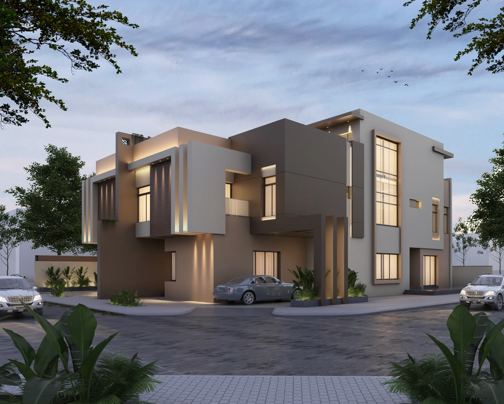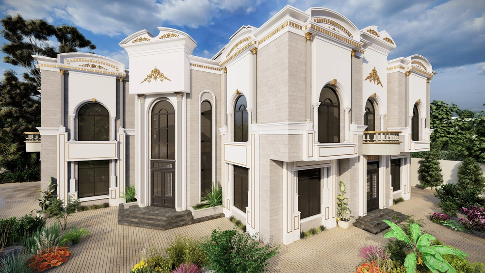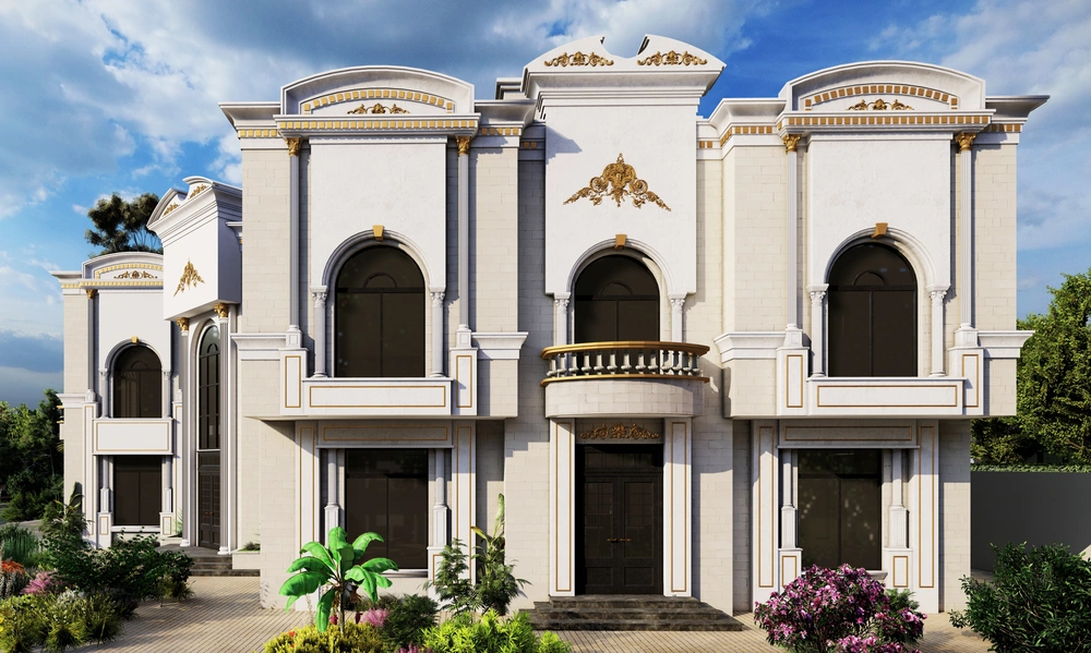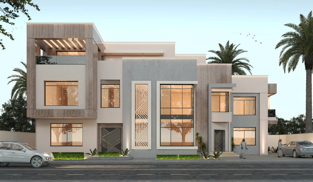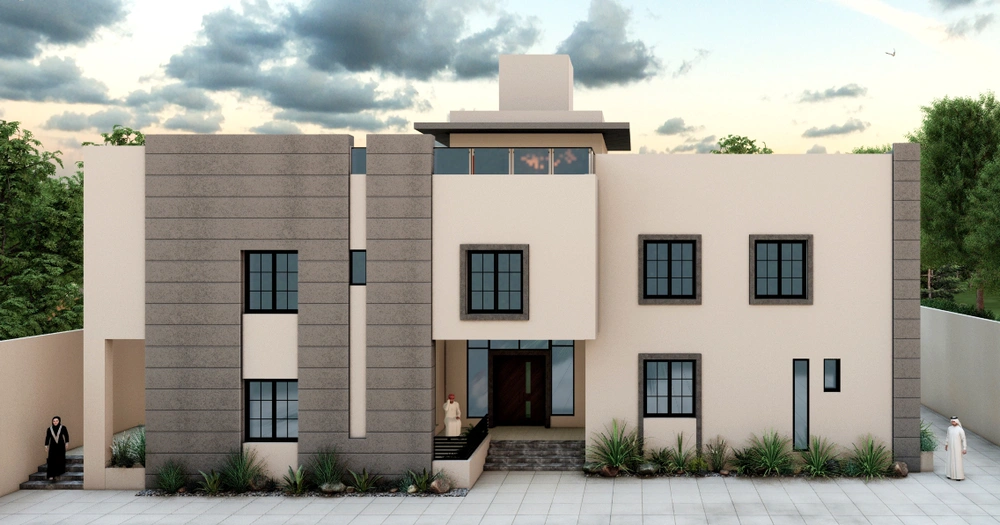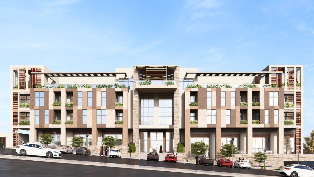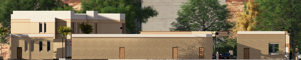 A residential building project on a land area of 1140 m2 located on two parallel streets, consisting of three basement floors, a ground floor, a first floor and an upper annex, and the design of the facades is inspired by the Asiri style and identity.