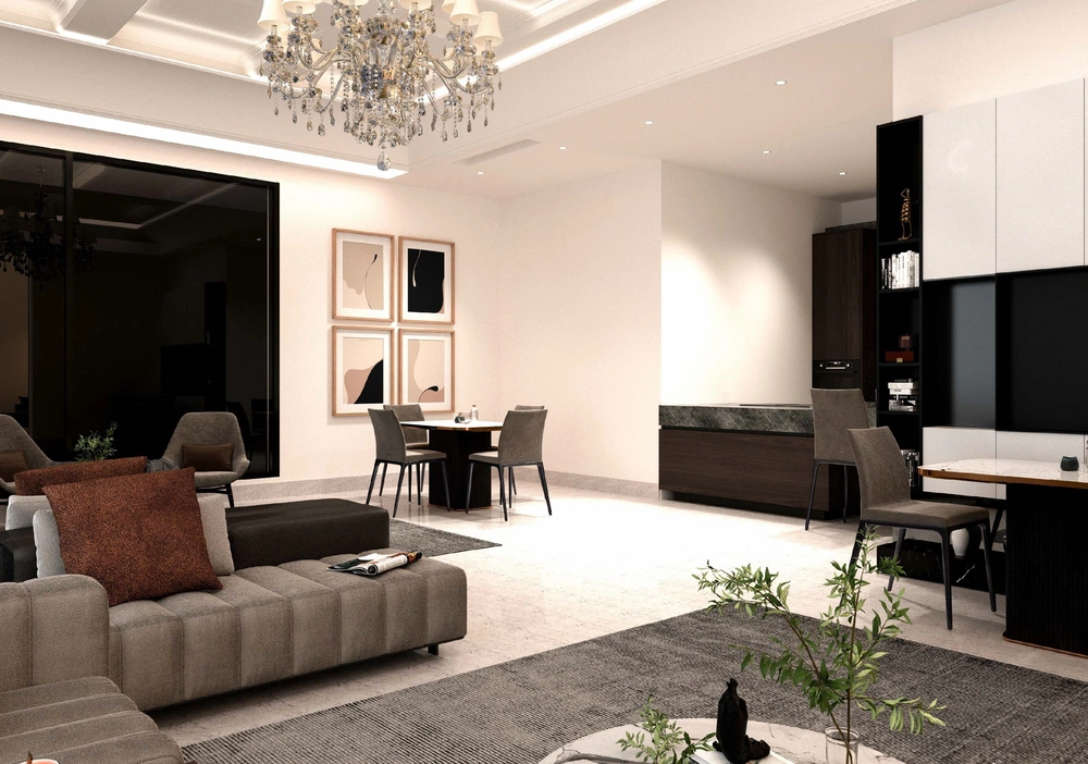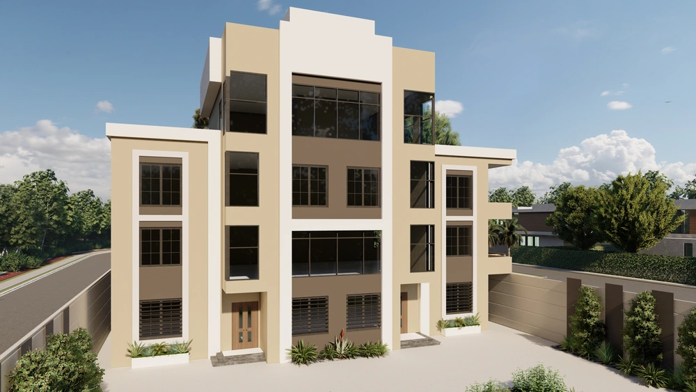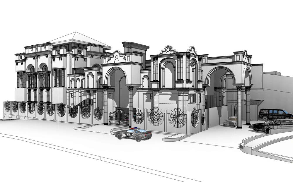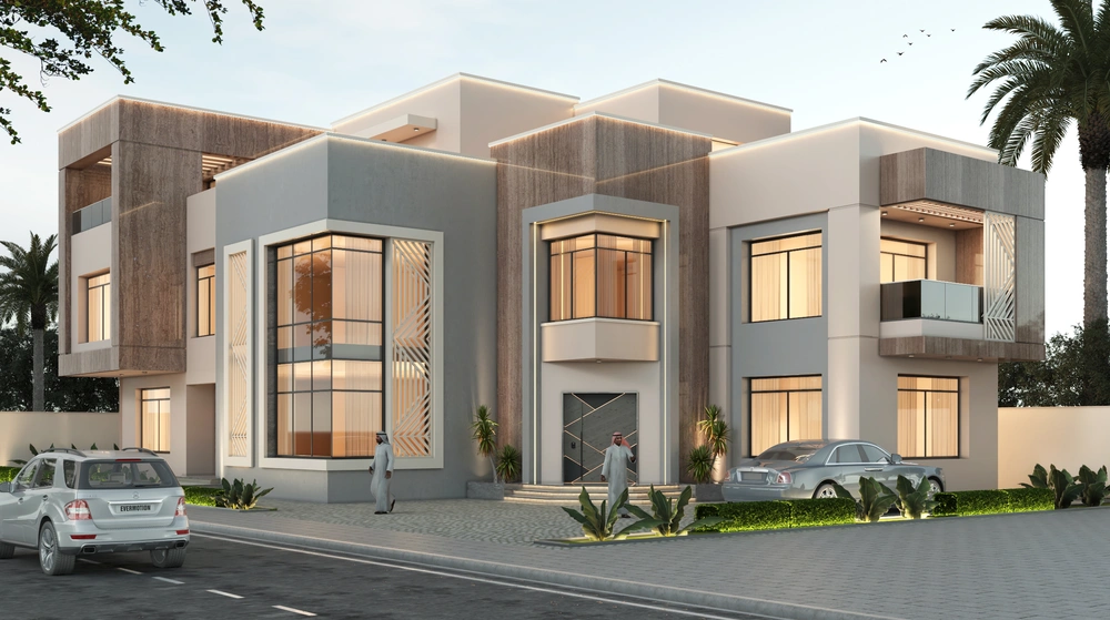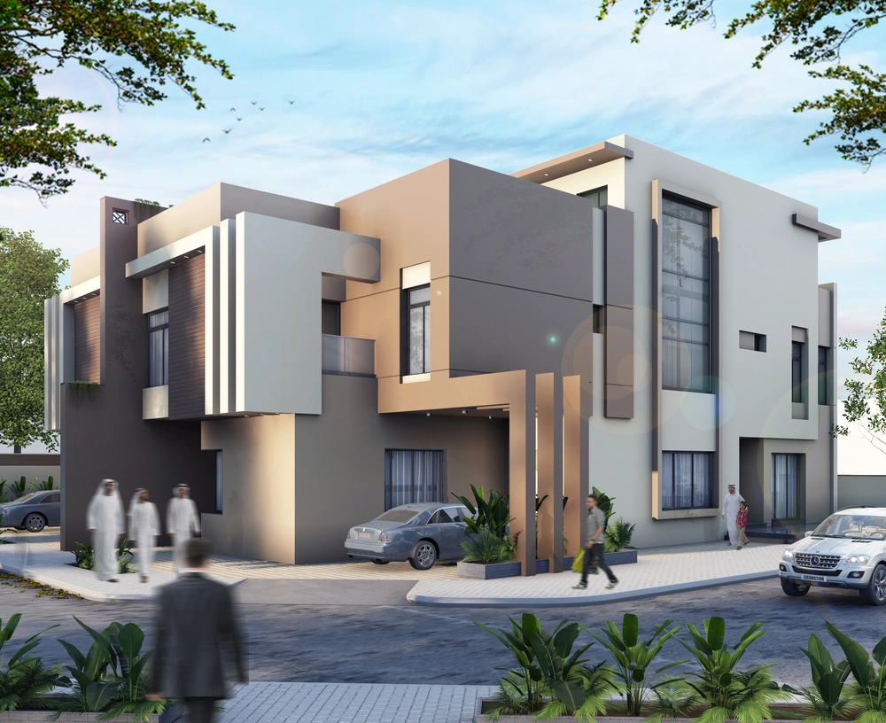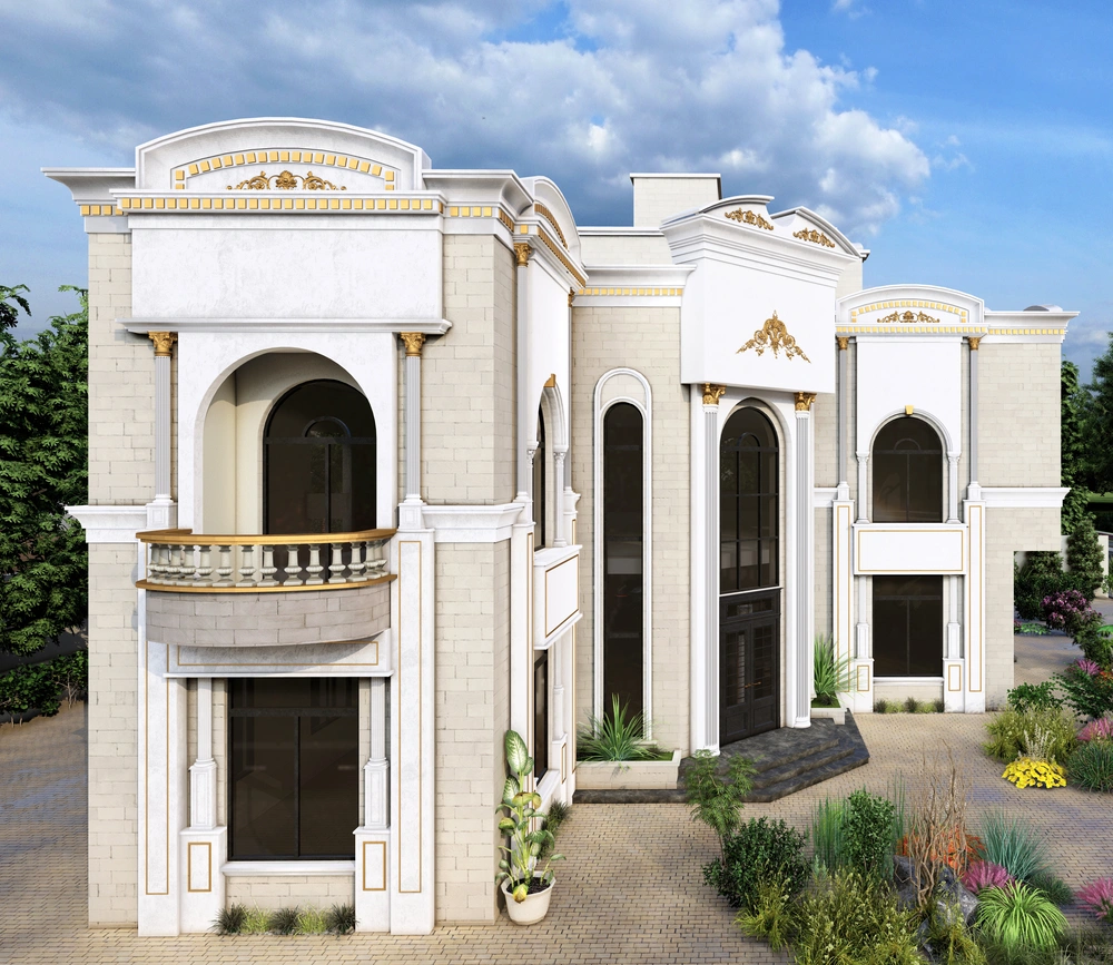 A residential building project on a land area of 1140 m2 located on two parallel streets, consisting of three basement floors, a ground floor, a first floor and an upper annex, and the design of the facades is inspired by the Asiri style and identity.