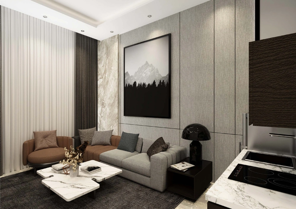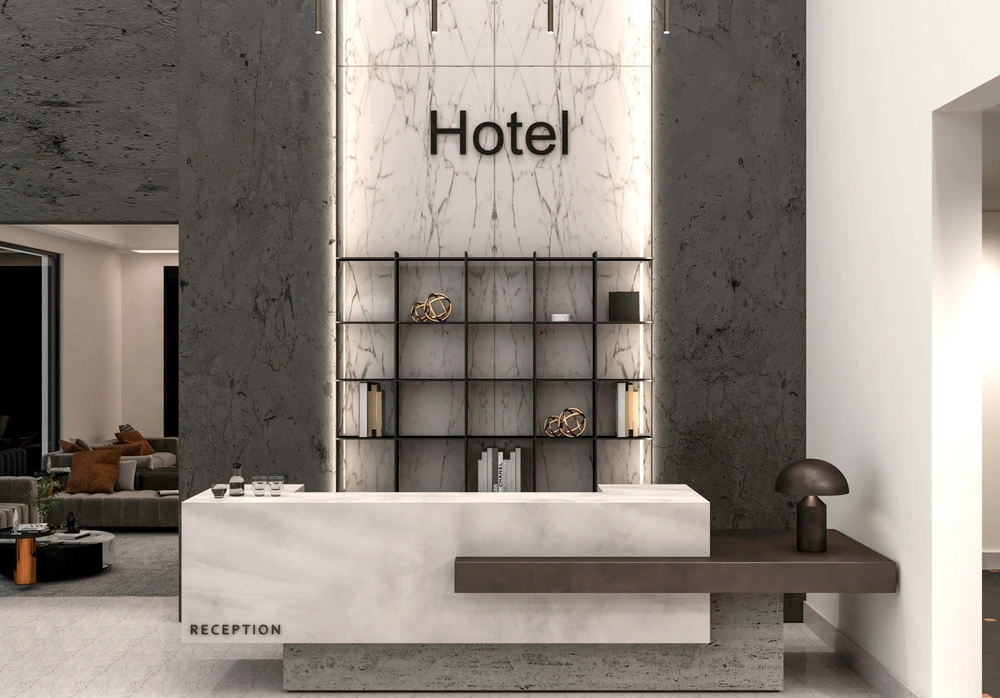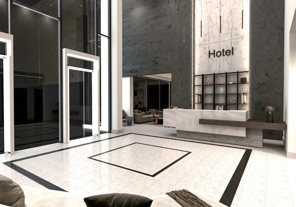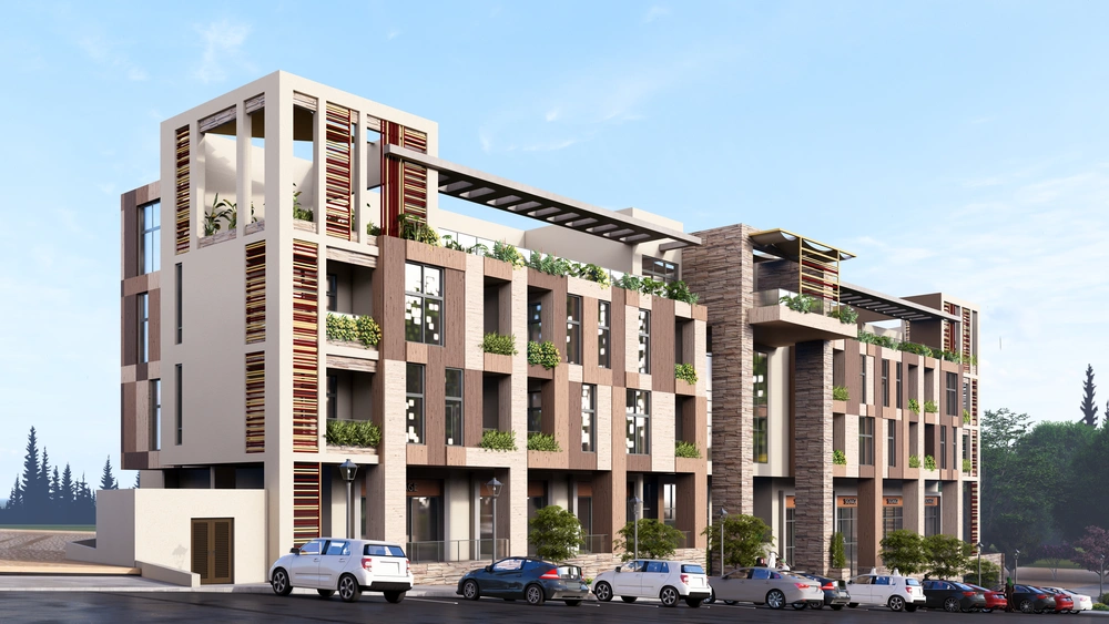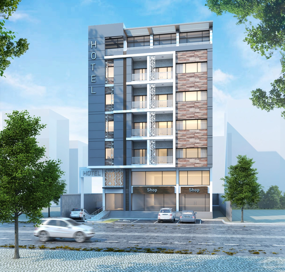 A hotel on a land area of 3700 m2 consisting of two basement floors (parking and services), a ground floor (shops), two repeated floors (hotel suites), and an upper annex (restaurant). The facade design was derived from simple geometric formations inspired by the architectural vocabulary of the Asir region, with balanced proportions between openings, local and contemporary finishing materials, and an interior design that meets the needs of tourists.