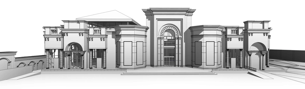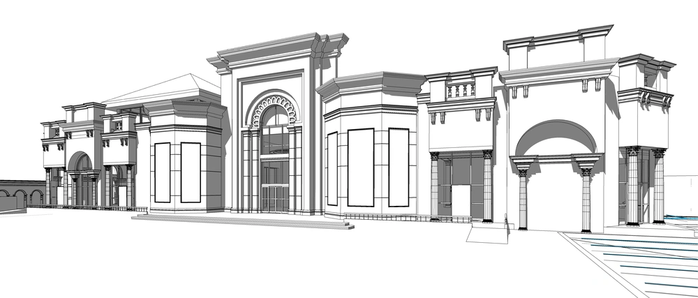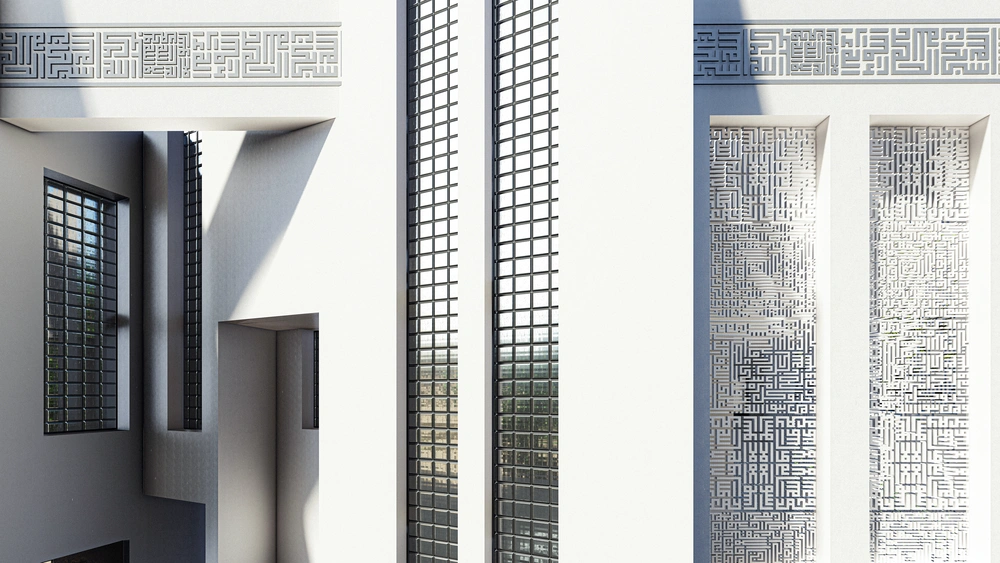 The project is distinguished by its varying elevations, which necessitated separate entrances for men and women to ensure complete privacy and separation. The facades were developed in a distinctive classical style, incorporating a high degree of detail on the main facades and setting the building apart from its surroundings.