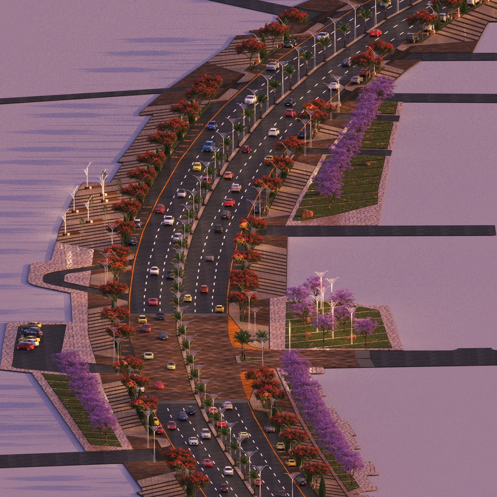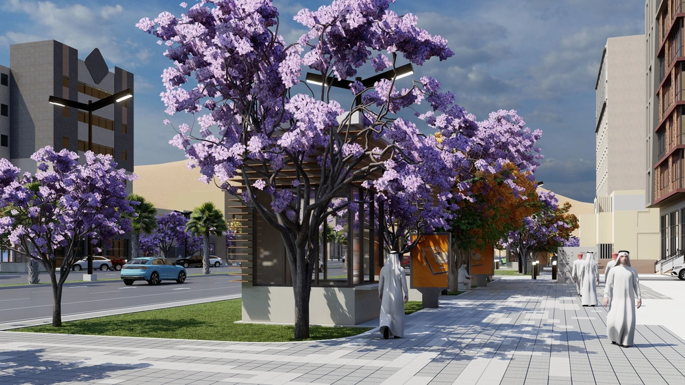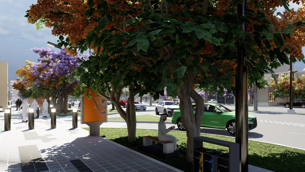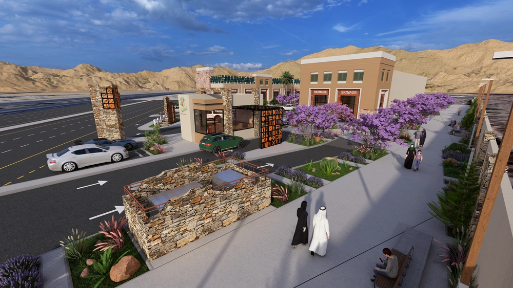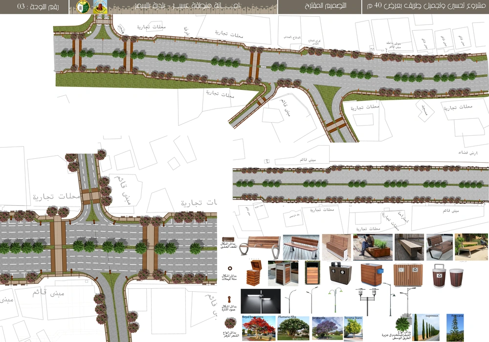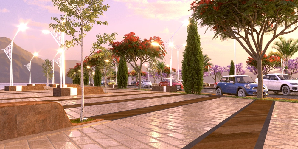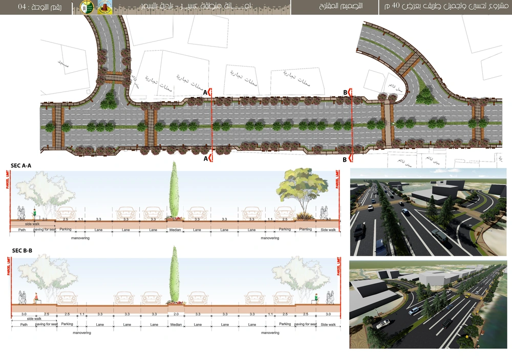 The project falls under the urban landscape improvement plan of the Asir Region Municipality. The project study is summarized in the design of the public road, which is the main axis of the city, with a width of 40 meters, in accordance with the principles of urban design and the requirements of the urban landscape, by studying traffic flow and automated routes, designing a connected pedestrian path free of obstacles, with the creation of open areas for activities along the path, as well as organizing parking spaces and achieving the principles of universal access in the road design so that it includes all segments of society.