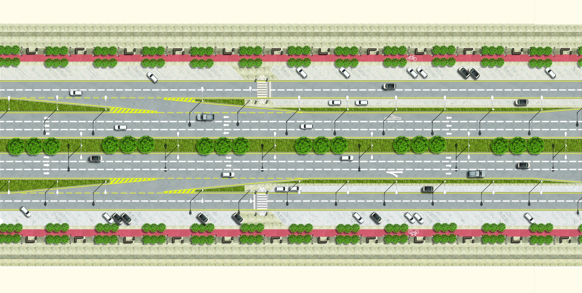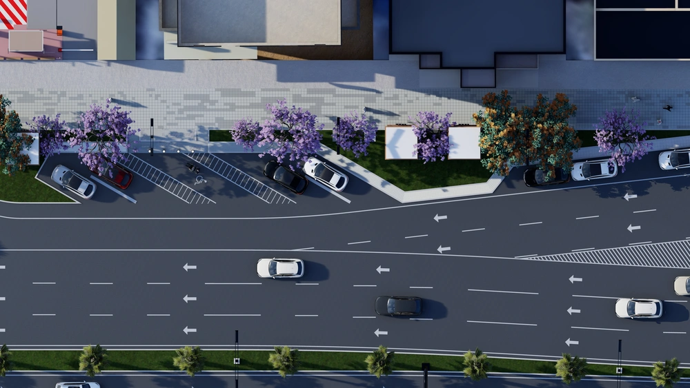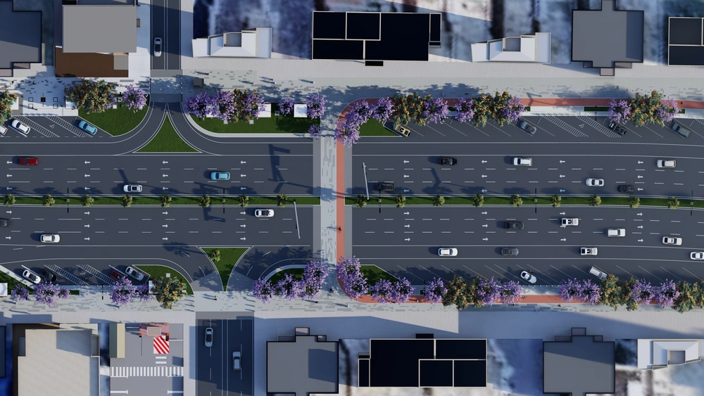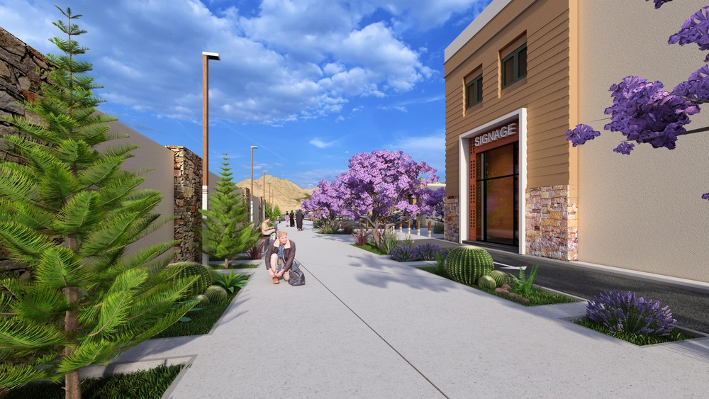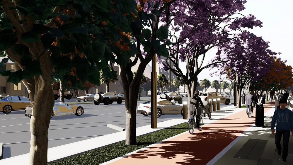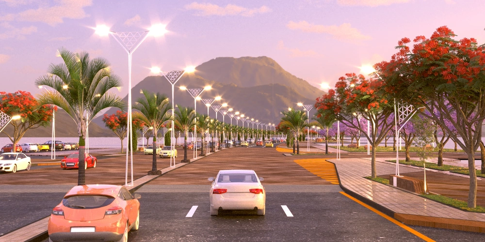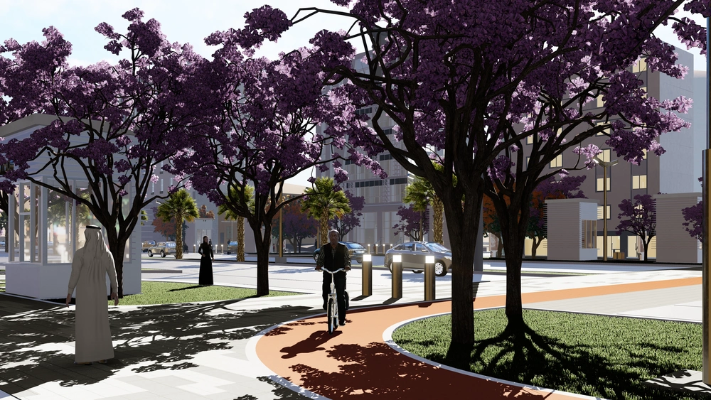The project falls under the urban landscape improvement plan of the Asir Region Municipality. The project study is summarized in the design of the public road, which is the main axis of the city, with a width of 40 meters, in accordance with the principles of urban design and the requirements of the urban landscape, by studying traffic flow and automated routes, designing a connected pedestrian path free of obstacles, with the creation of open areas for activities along the path, as well as organizing parking spaces and achieving the principles of universal access in the road design so that it includes all segments of society.