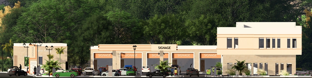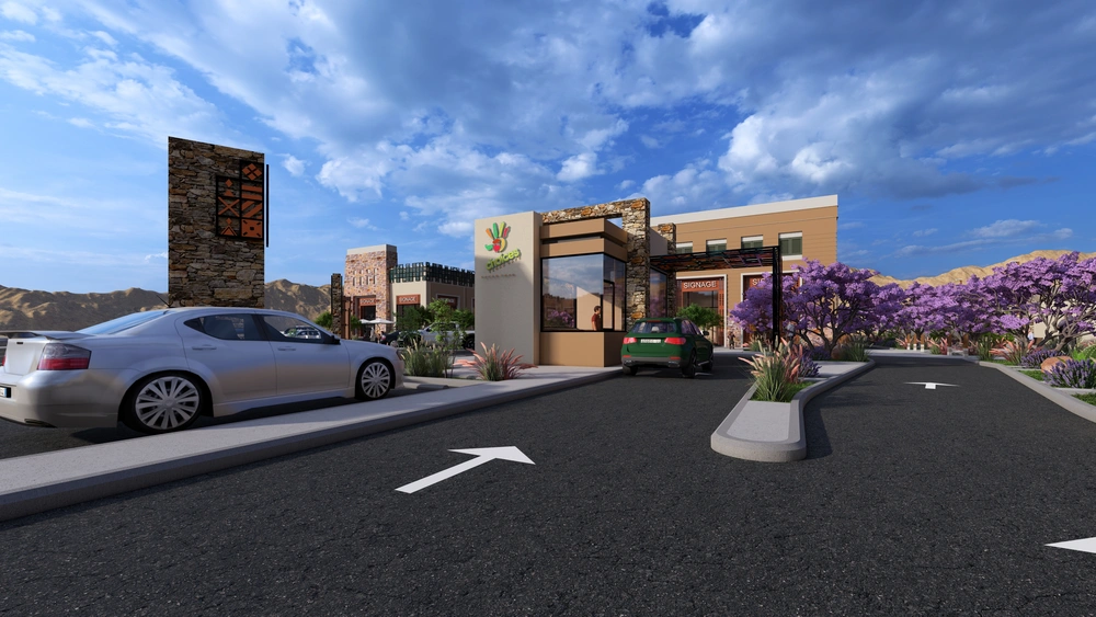A commercial exhibition project on a land area of 11,152 m2 consisting of the main shop building (ground floor and mezzanine) and a separate building for express car orders. A distinctive architectural design has been developed that is compatible with the Saudi architectural identity, combining local and contemporary finishing materials with the addition of some architectural elements derived from the character of the Abha highlands.