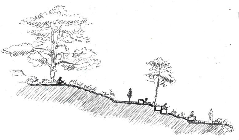 The project falls under the development projects of tourist and coastal areas in the city of Abha. The site is a park with an area of 144,000 m2 in which activities vary between open green areas, pedestrian paths, social event squares, service and recreational elements, in addition to the Urban Youth Center building and the open theater, as well as the presence of a continuous pedestrian path of 1 kilometer and flying seats with an internal view of the site and the city of Abha.